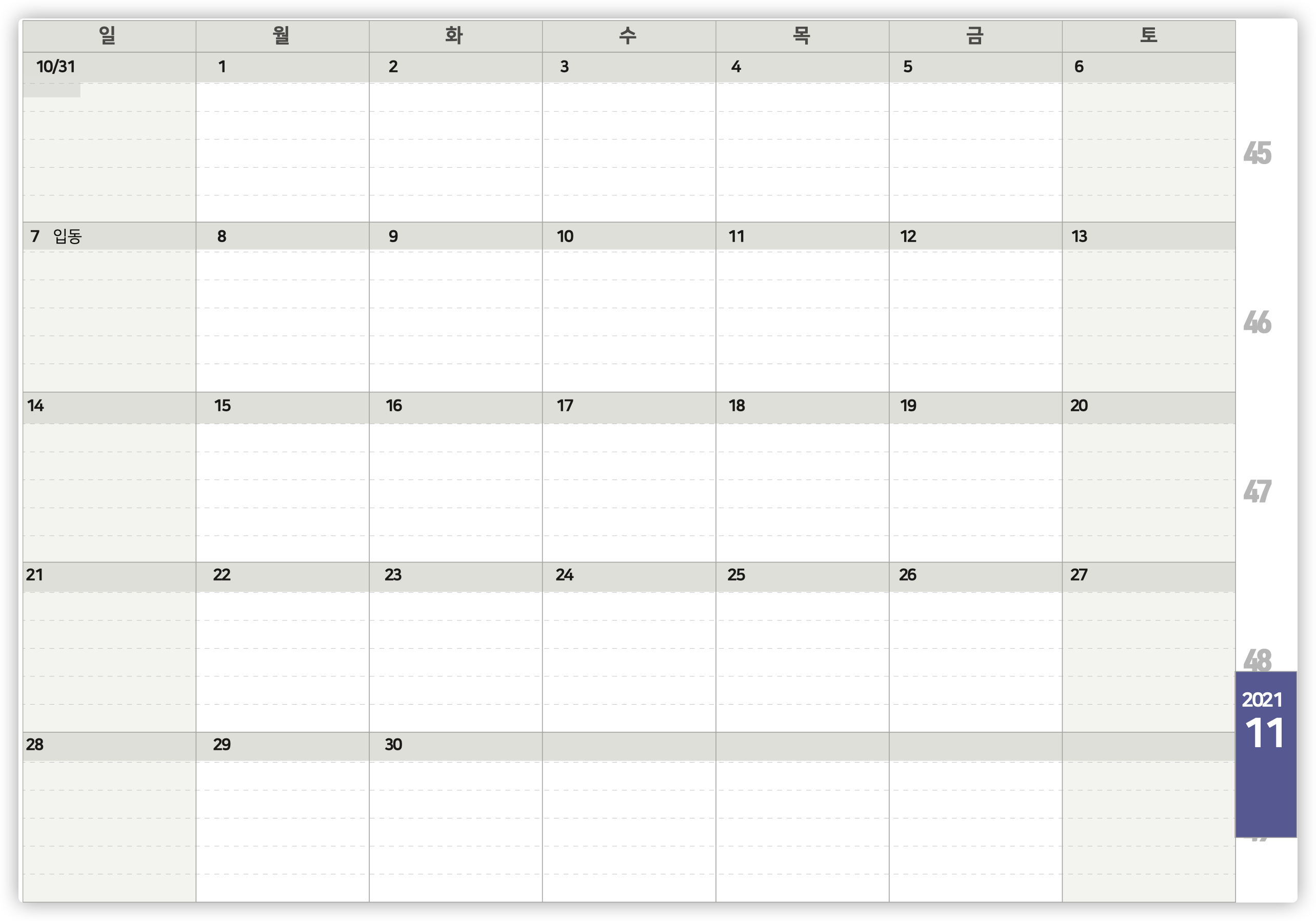 2021년 11월 달력을