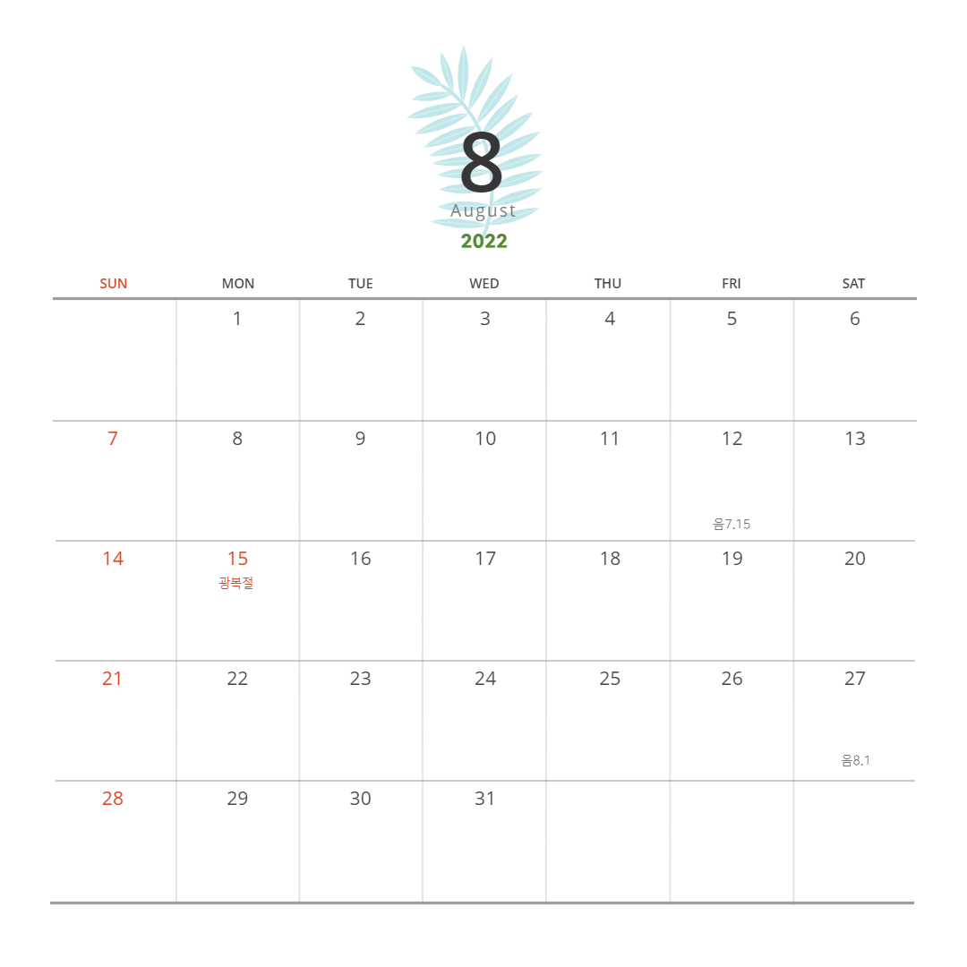 | 2022년 7월 달력 프린트, 무료로 출력 하세요^^ (비번X) (0) | 2021.09.18 |